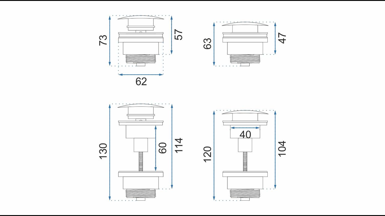 Донний клапан Rea click-clack універсальний, підходить як для умивальників з переливним отвором, так і без переливного отвору. Завдяки спеціальній фазі виробництва пробка захищена від корозії, затемнення та зміни кольору. Відповідні умивальники можна знайти на нашому веб-сайті. Запрошуємо ознайомитися з нашою пропозицією!