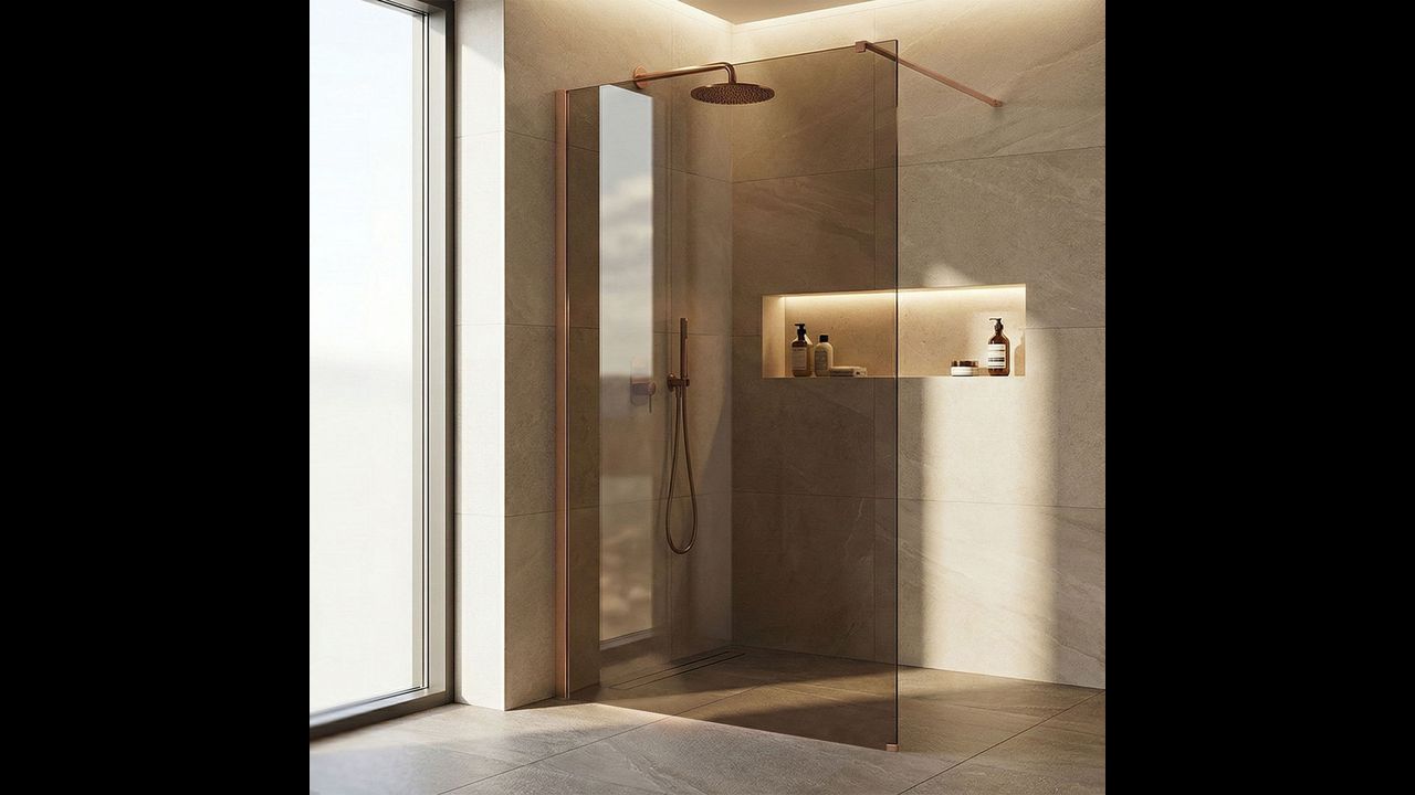 Душова перегородка Rea Flexi — це пропозиція для тих, хто шукає вишуканий стиль. Мідні деталі у поєднанні з коричневим склом створюють зону купання з особливою атмосферою. Завдяки покриттю Easy Clean і надійним матеріалам виріб поєднує високу естетику з практичністю щоденного використання.