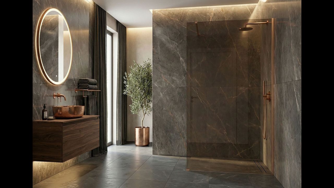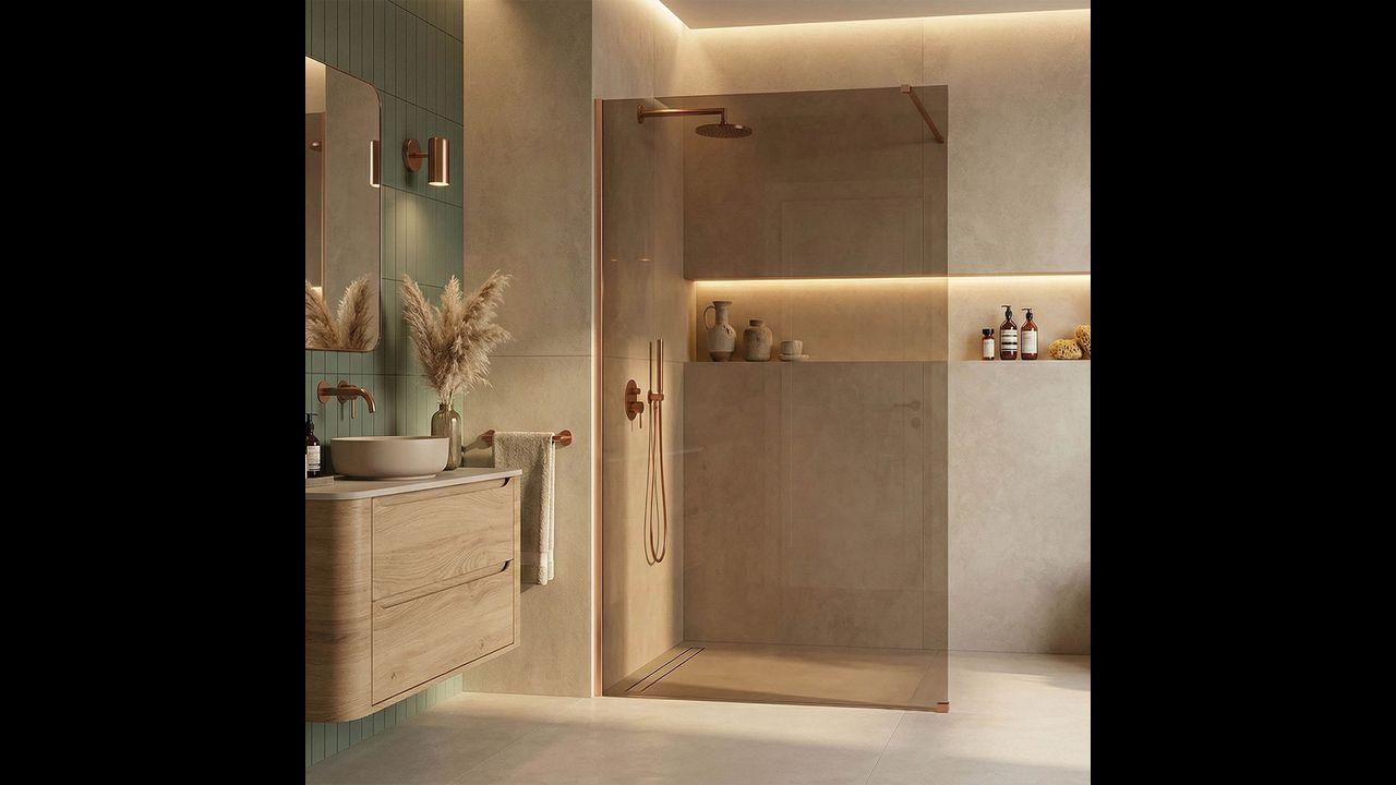 Душова перегородка Rea Flexi — це пропозиція для тих, хто шукає вишуканий стиль. Мідні деталі у поєднанні з коричневим склом створюють зону купання з особливою атмосферою. Завдяки покриттю Easy Clean і надійним матеріалам виріб поєднує високу естетику з практичністю щоденного використання.