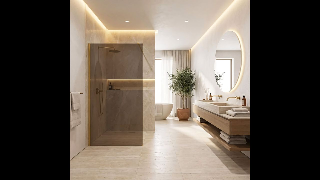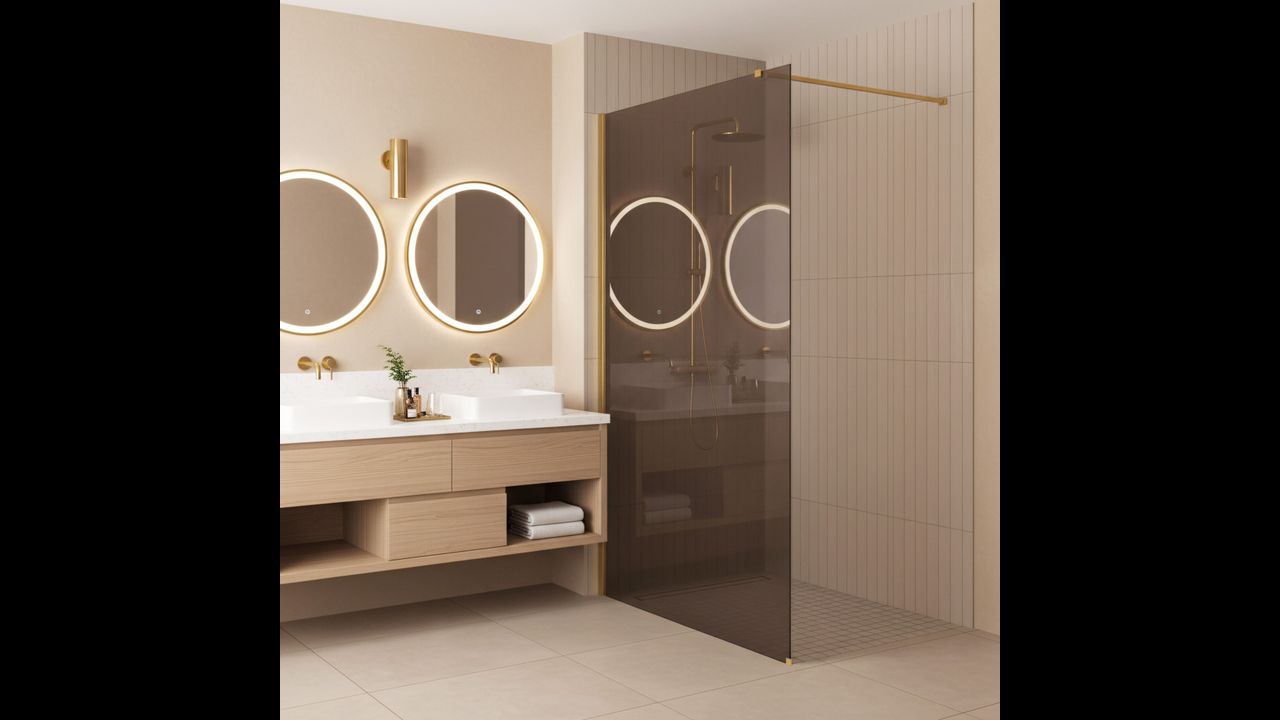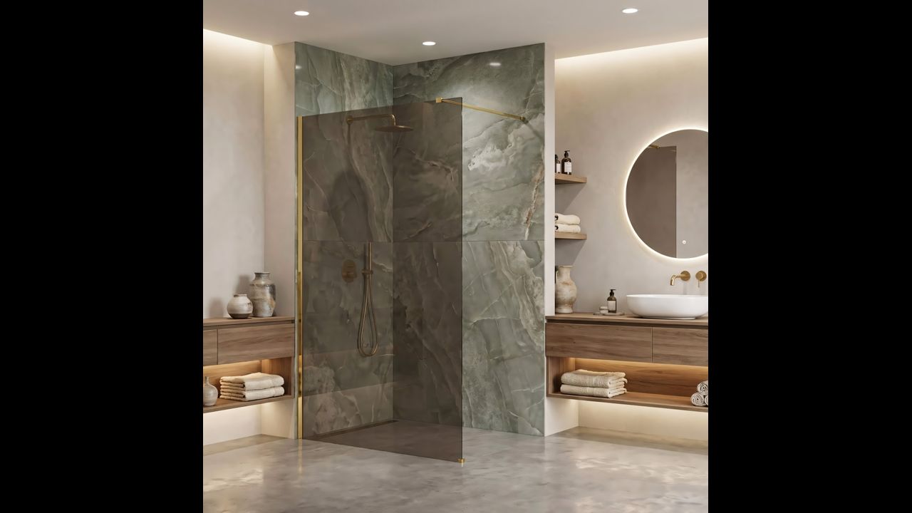Створіть у ванній атмосферу теплого люксу завдяки душовій перегородці walk-in Rea Flexi в унікальній конфігурації: скло у відтінку Димчастий Коричневий та профіль у кольорі глянцеве золото. Гармонійне поєднання затемненої коричневої площини зі сяйвом деталей формує надзвичайно елегантний і затишний простір. Конструкція з міцного загартованого скла 8 мм забезпечує стабільність і безпеку користування.