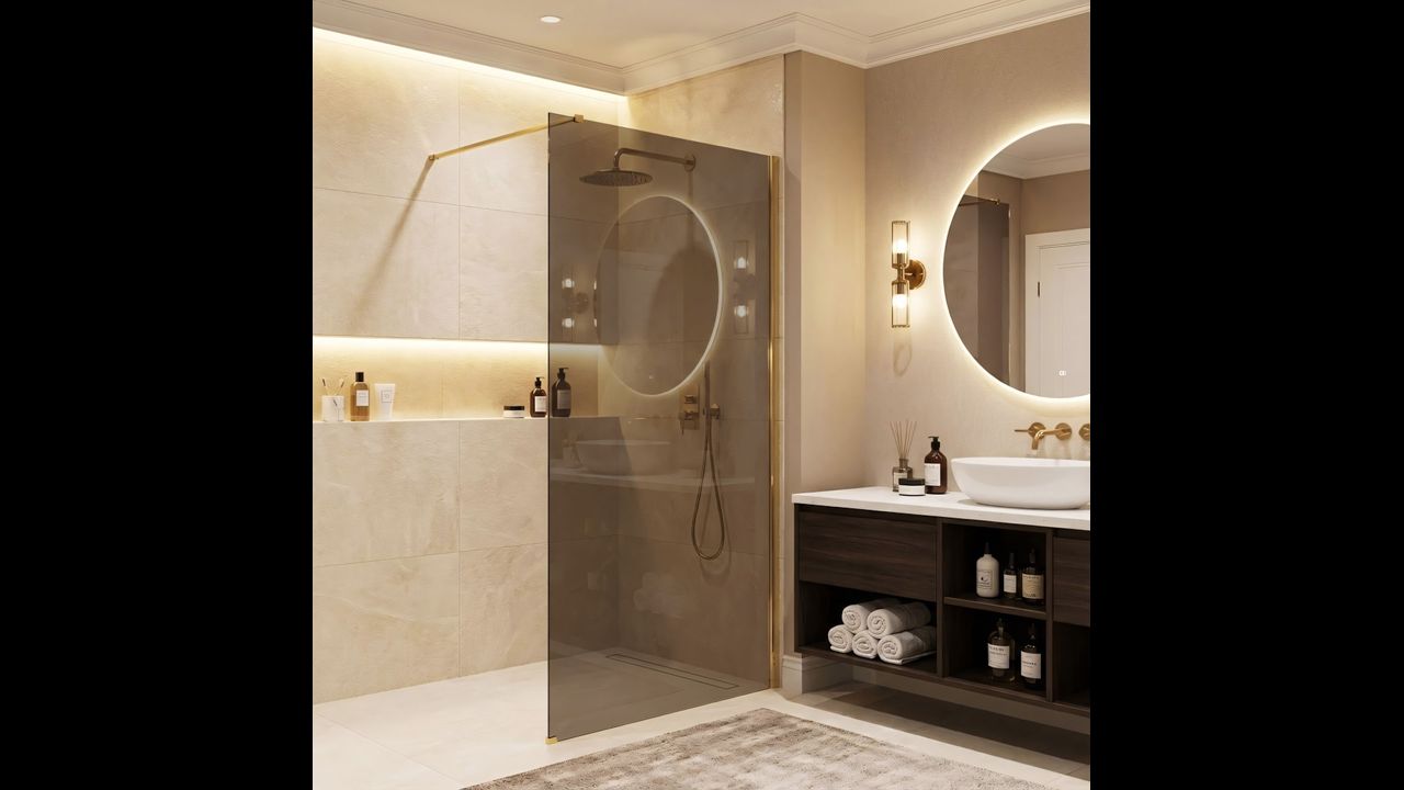 Створіть у ванній атмосферу теплого люксу завдяки душовій перегородці walk-in Rea Flexi в унікальній конфігурації: скло у відтінку Димчастий Коричневий та профіль у кольорі глянцеве золото. Гармонійне поєднання затемненої коричневої площини зі сяйвом деталей формує надзвичайно елегантний і затишний простір. Конструкція з міцного загартованого скла 8 мм забезпечує стабільність і безпеку користування.