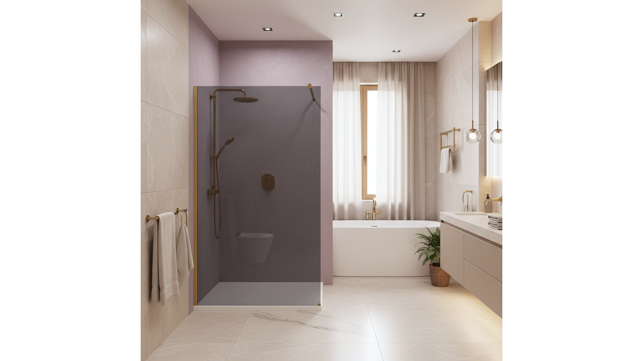 Створіть у своїй ванній кімнаті зону відпочинку з унікальним та елегантним характером. Оберіть душову перегородку walk-in Rea Flexi в ефектній конфігурації: скло сірого відтінку та профілі кольору щіткове золото. Це поєднання сучасної затемненої скляної панелі й теплого оздоблення профілів надає інтер’єру особливої вишуканості. Конструкція з безпечного загартованого скла 8 мм гарантує довговічність і безпеку.
