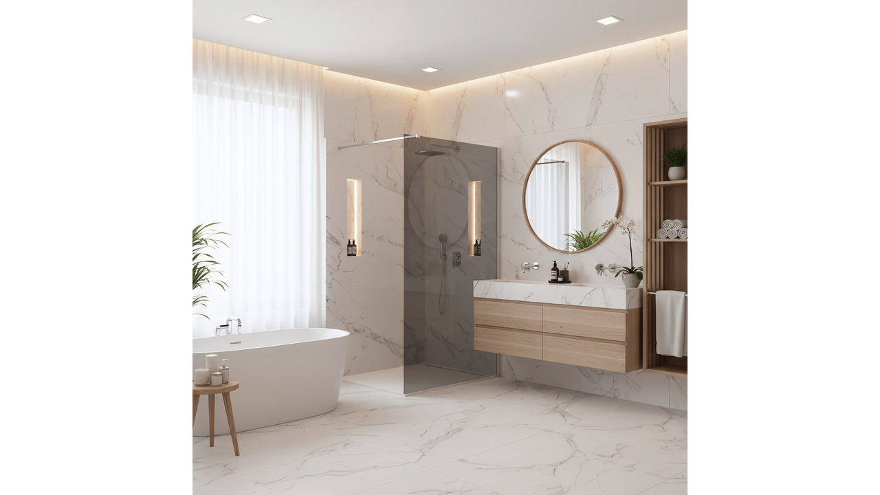 Шукаєте рішення, що поєднує сучасний стиль і класичний блиск? Оберіть душову перегородку walk-in Rea Flexi із сірим склом і профілями в кольорі хром. Таке поєднання додає ванній елегантності у холодному відтінку та ідеально підходить для сучасних інтер’єрів. Конструкція з міцного 8 мм загартованого скла гарантує стабільність і безпеку.