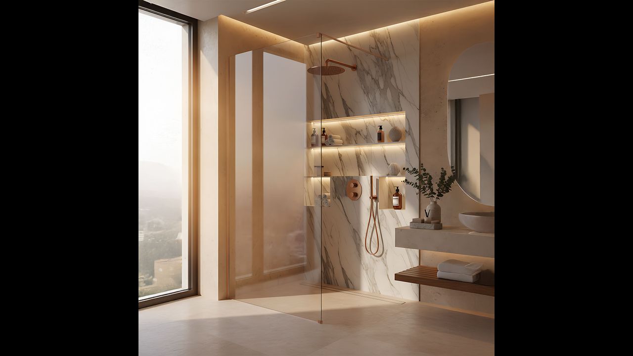 Мрієте про ванну кімнату, сповнену тепла та розкоші? Відкрийте для себе душову перегородку walk-in Rea Flexi у цікавій конфігурації: прозоре скло та профіль у кольорі щіткової міді. Поєднання сучасної форми й елегантного оздоблення надає інтер’єру унікального характеру. Конструкція з безпечного загартованого скла 8 мм гарантує довговічність і стабільність.