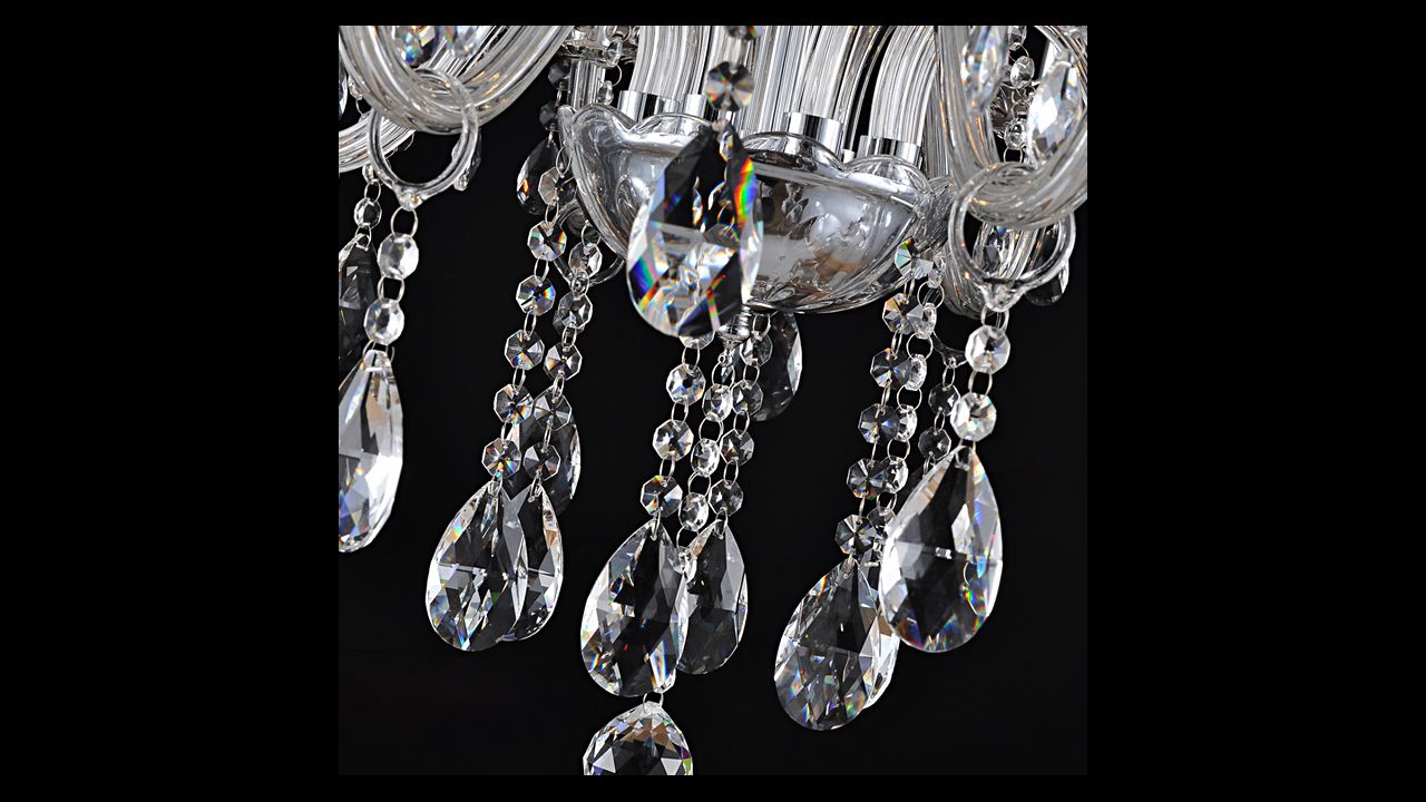Lampa została wykonana z wysokiej jakości metalu odpornego na zarysowania czy uszkodzenia mechaniczne. Całego charakteru i eleganckiej nuty dodają kryształy tworzące piękny efekt świetlny rozpraszając światło.