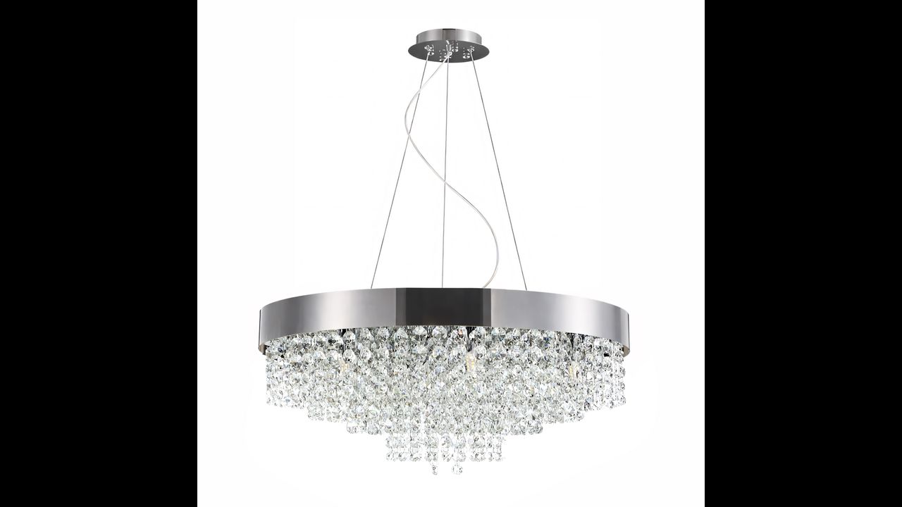 Цей елегантний підвісний стельовий світильник — виразне поєднання сучасної форми та декоративного характеру, ідеальне для інтер’єрів, де важливі візуальний ефект і інтенсивне, представницьке освітлення. Міцна металева конструкція у хромованому оздобленні надає виробу сучасного «холодного» блиску та чудово вписується в стилі glamour, modern і contemporary.