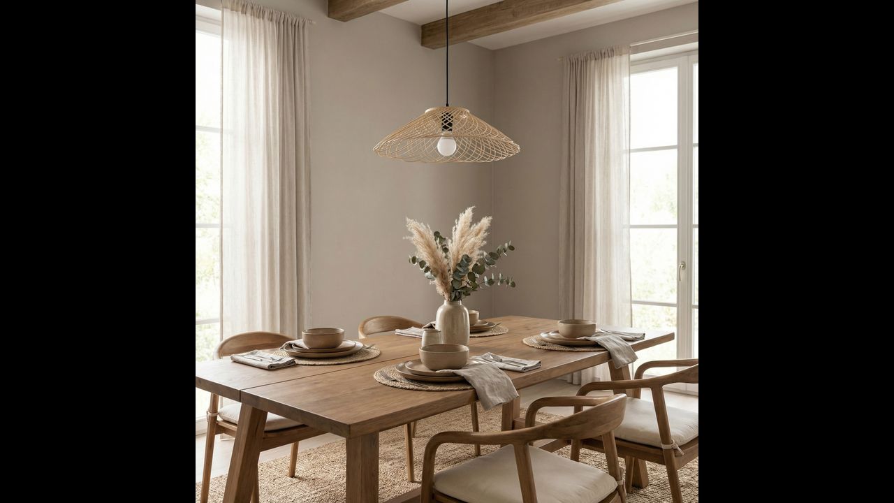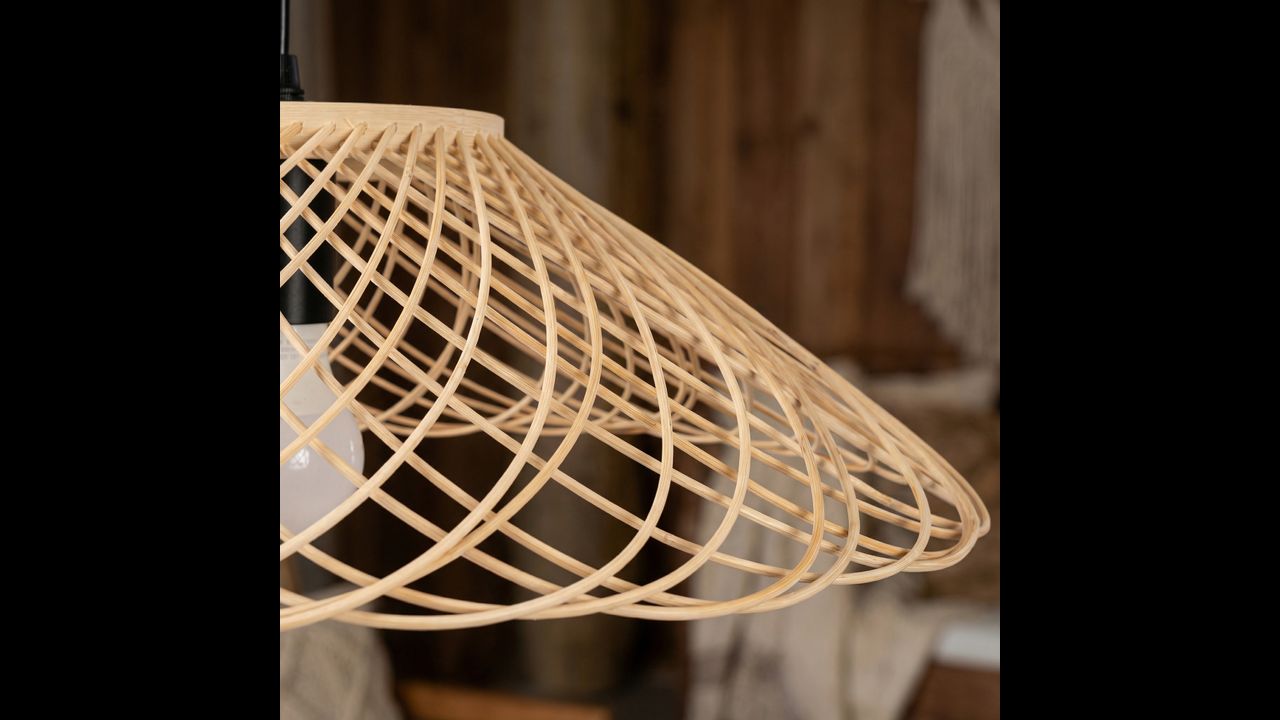 Підвісний світильник у стилі бохо — це унікальне поєднання природного вигляду, легкої форми та декоративного дизайну, натхненного плетеною структурою. Його широкий ефектний абажур у теплому відтінку дерева створює затишну атмосферу, а ажурна конструкція м’яко розсіює світло, формуючи ніжний і атмосферний ефект.