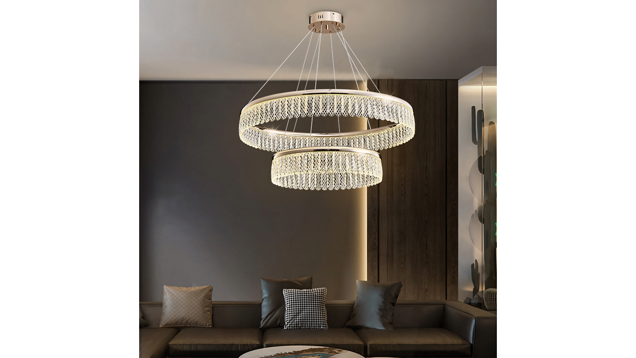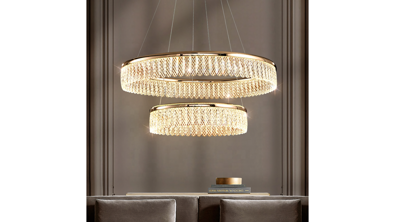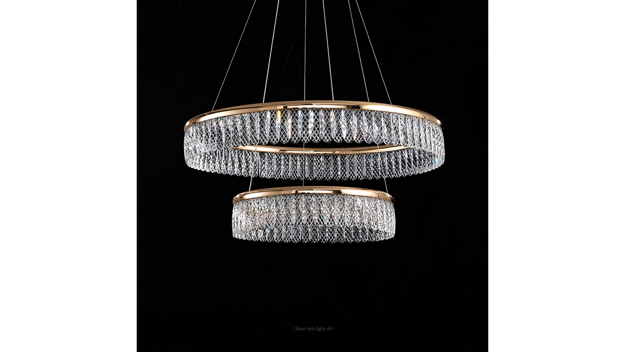 Цей ефектний підвісний стельовий LED світильник створений для тих, хто шукає поєднання розкішного дизайну, сучасних технологій і декоративної форми. Конструкцію спроєктовано на основі золотої оправи та естетичної стельової чаші, які надають виробу елегантного характеру та чудово поєднуються з інтер’єрами у стилі glamour, modern classic і сучасними просторами.