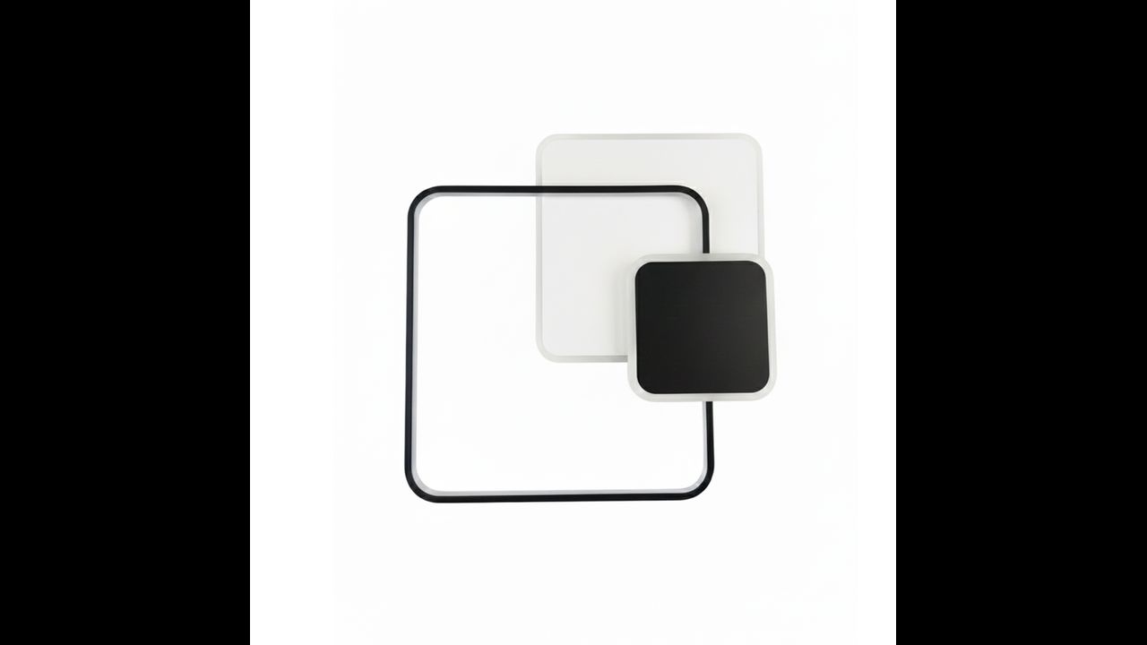 Сучасний стельовий світильник LED у чорно-білій палітрі — виразна пропозиція для поціновувачів мінімалістичного дизайну з графічним характером. Геометрична форма, побудована на поєднанні квадратних панелей із заокругленими кутами та легкої лінійної рами, створює цілісну сучасну композицію. Вбудований LED-модуль випромінює рівномірне, м’яке світло, яке делікатно розсіюється навколо панелей, підкреслюючи контраст між чорним і світлою поверхнею.