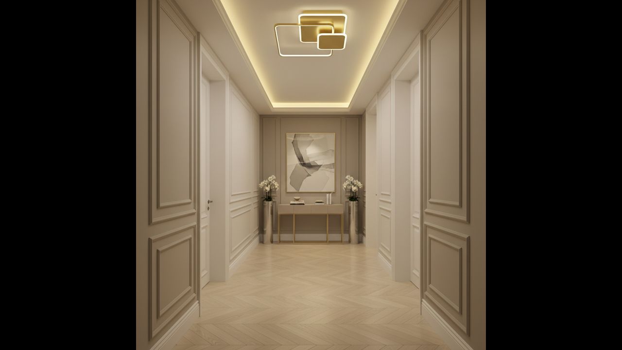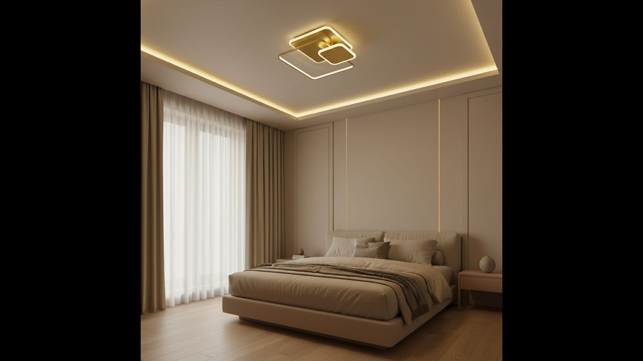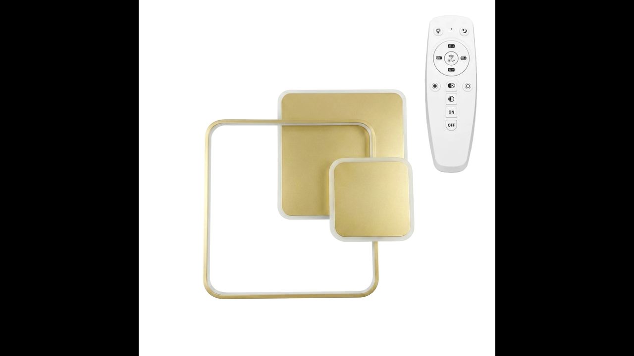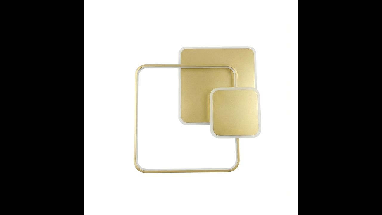 Сучасний стельовий світильник LED у золотому оздобленні вражає геометричною формою та стриманою елегантністю. Композиція, побудована на поєднанні квадратних панелей із заокругленими кутами та делікатної лінійної рами, створює цілісний і візуально легкий образ. Вбудоване LED-джерело випромінює рівномірне, м’яке світло, яке тонко підкреслює золоту поверхню та надає інтер’єру приємного сучасного настрою.