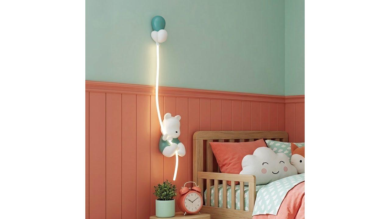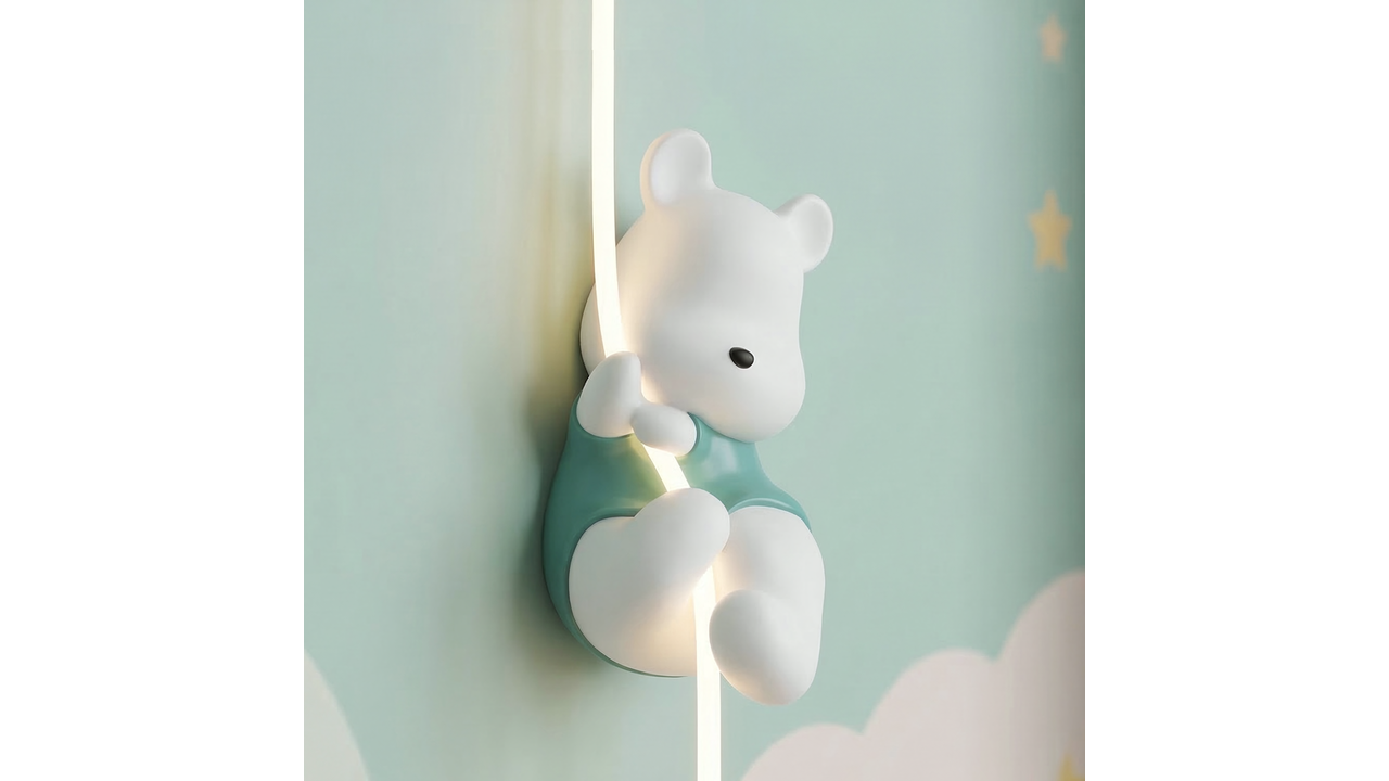 Великою перевагою настінного світильника є можливість довільно розмістити ведмедика на LED-стрічці та закріпити його на стіні відповідно до власної композиції. Завдяки цьому настінна лампа для дитячої кімнати дозволяє створити цікаву індивідуальну композицію та адаптувати освітлення до конкретного простору.