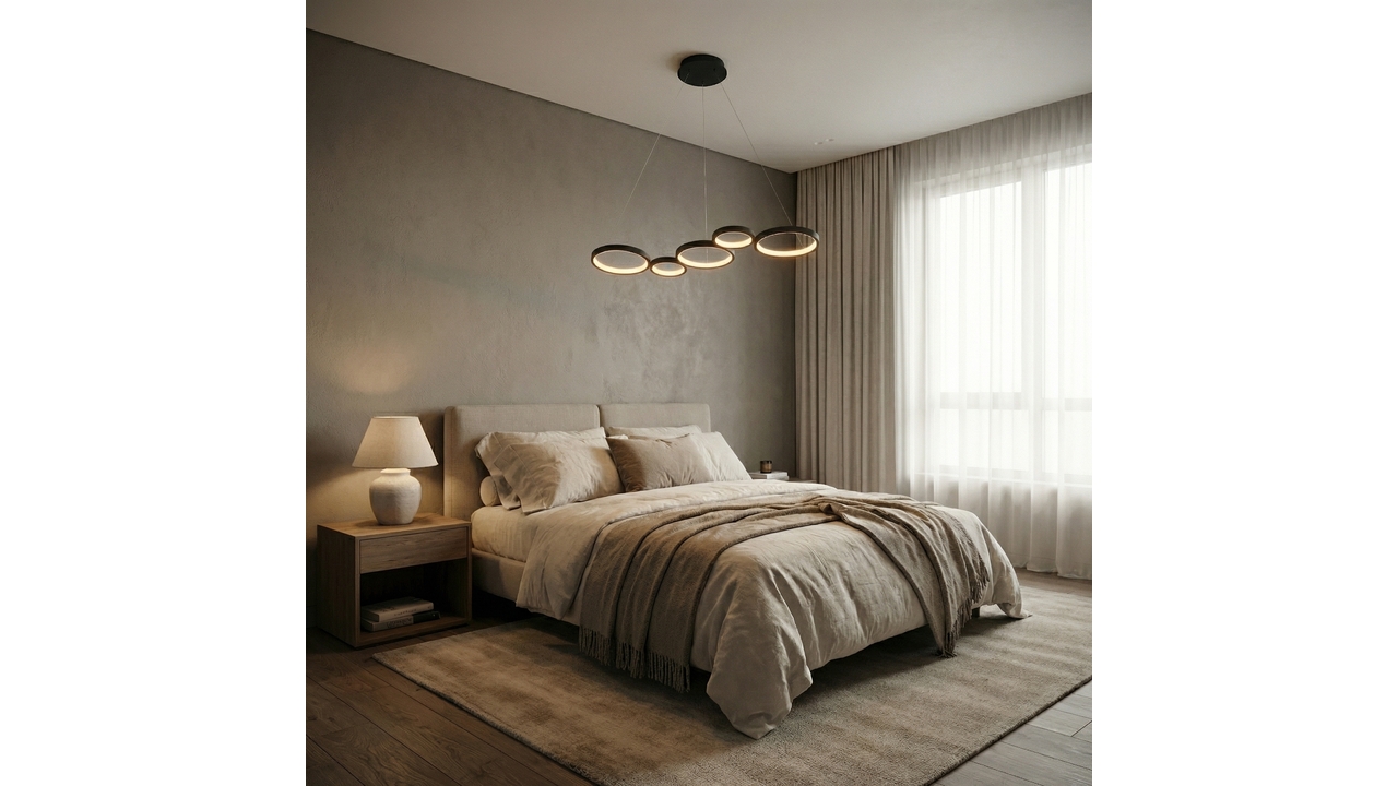 Підвісна лампа з сучасною, геометричною формою — стильна пропозиція для мінімалістичних і дизайнерських інтер’єрів. Композиція з кількох кіл різних розмірів створює цікавий, динамічний образ, який привертає увагу та надає простору сучасного характеру. Чорна кольорова гамма підкреслює елегантність і робить модель чудовим доповненням до актуальних трендів в оформленні інтер’єру.