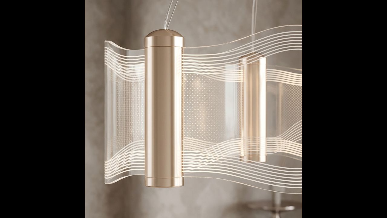 Підвіс на кількох тонких тросах надає лампі сучасного вигляду і дозволяє домогтися ефекту просторової форми, що легко ширяє в повітрі. Завдяки гармонійному поєднанню прозорих поверхонь і золотої обробки модель чудово гармонує з інтер’єрами в стилі модерн, софт-гламур, контемпорарі та преміум.