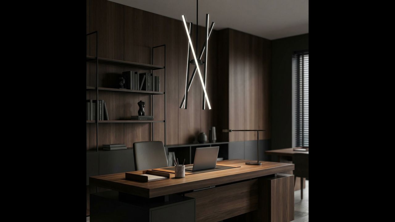 Струнка конструкція виглядає легко й сучасно, водночас стаючи помітним декоративним акцентом у приміщенні. Вбудоване LED-джерело забезпечує рівномірне й комфортне освітлення для щоденного використання, а світла панель цікаво контрастує з темною рамою.