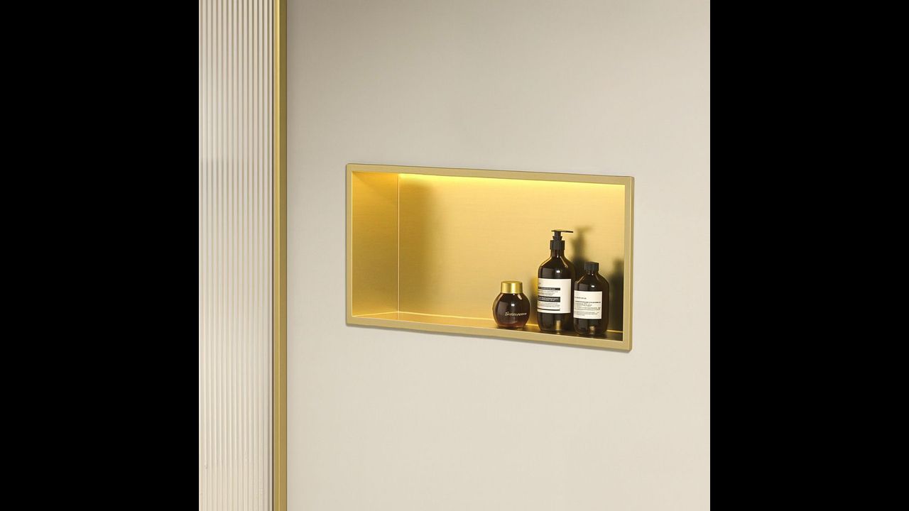 Настінна нішева полиця у ванній кімнаті з LED-підсвіткою — це функціональне та естетичне рішення, яке чудово підійде у душі, над ванною або в іншій зоні ванної. Виготовлена з високоякісної нержавіючої сталі Aisi 304, вона стійка до вологи, корозії та інтенсивного використання, зберігаючи свій вигляд на довгі роки.