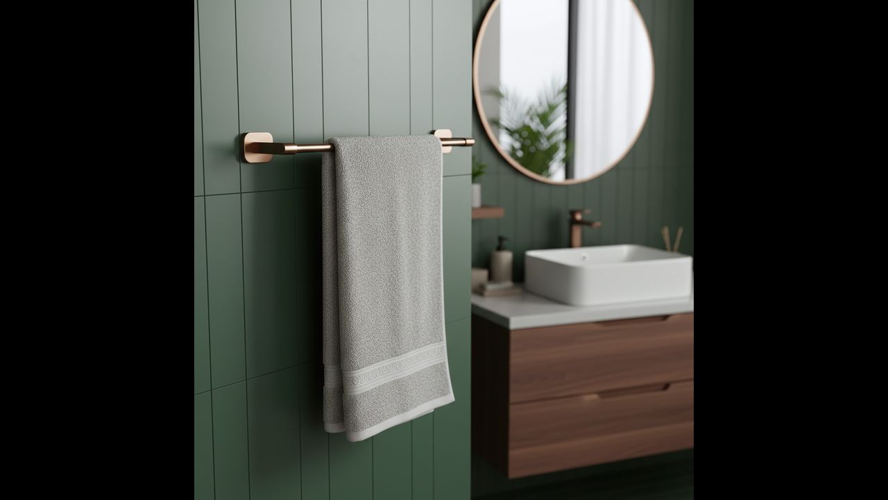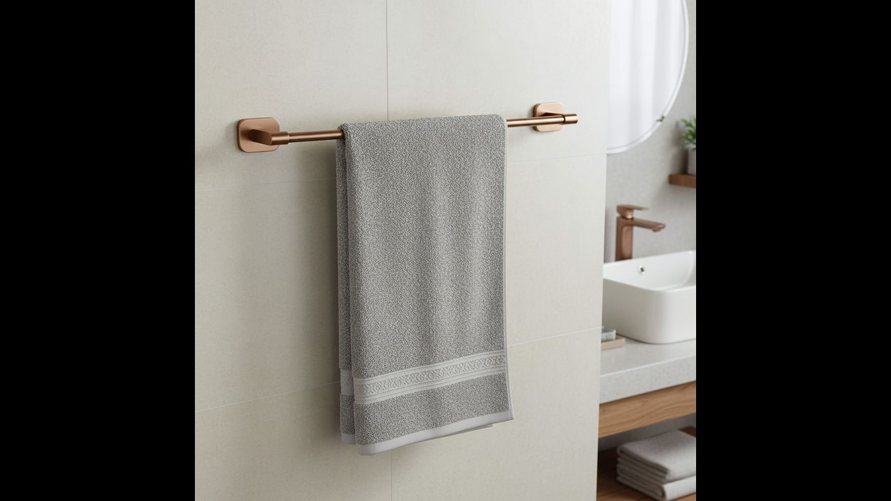 Подбайте про ідеальний порядок і мінімалістичний стиль у своїй ванній кімнаті з тримачем для рушників Rea Nico. Його універсальне покриття в кольорі щіткової міді ідеально вписується в сучасні тенденції, поєднуючи елегантність із практичністю. Повністю виготовлений із високоякісного металу, він забезпечує довговічність і повний захист від вологи на довгі роки.
