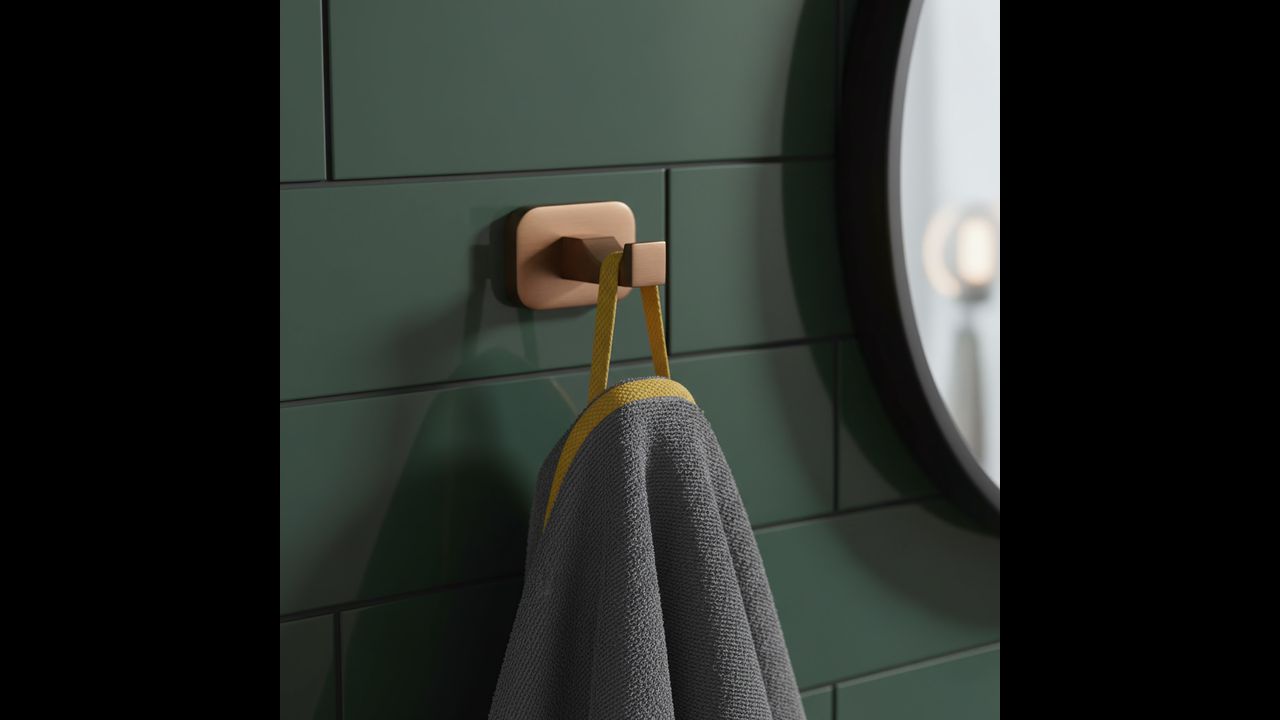 Додайте елемент розкоші та ідеального порядку у вашу ванну кімнату з гачком для ванної Rea Nico. Його витончена обробка під шліфовану мідь привертає увагу та надає інтер’єру теплого, елегантного характеру. Це невелика деталь, що поєднує в собі вишуканий дизайн і щоденну функціональність. Виготовлений повністю з високоякісного металу, забезпечує надійність і довговічність на довгі роки.
